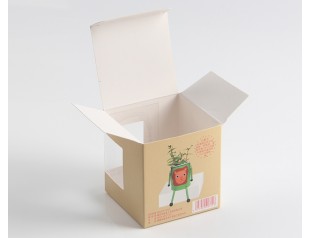 高檔簡(jiǎn)易紙盒,采用250g單銅紙,四色印刷,盒身選用PVC透明窗口。將卡通的盆栽的圖文印刷在包裝盒的表面,直觀的表達(dá)了包裝盒里的產(chǎn)品。卡通的圖案,結(jié)合產(chǎn)品屬性,給人輕松,愉快的購(gòu)物體驗(yàn)。