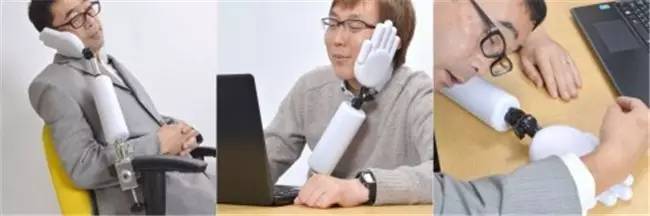 還有這個,設(shè)計師發(fā)現(xiàn),人們常常用手托住下巴休息,但是這樣就只能一只手工作了。如何兩全其美,便設(shè)計了這款手撐托。造型是有些奇葩,像是莫名被人拍了一巴掌,但是非常多功能,小憩休息也適用呢??催^這兩款設(shè)計之后還會覺得小編又冤枉他們嗎?