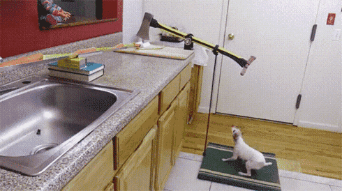 8、美國一位Youtube上的紅人,也是腦洞頗大,設(shè)計這款自動切菜神器。只是心疼了汪,跳了半天,也沒吃上一口肉肉。狗狗此時的內(nèi)心獨白應(yīng)該是:鏟屎的,你沒事把肉掛那么高干嘛?老子跳半天也沒吃上一口,等下我心情不好了就會想拆家的哦!嗯,小編這狗語十級,掌聲鼓勵。