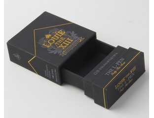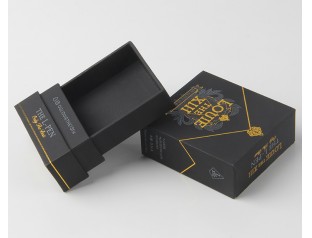 金色、白色的文字、圖案、線條互相交錯(cuò),本以為錯(cuò)綜復(fù)雜的排版會(huì)讓版面變得異常的凌亂,但這個(gè)盒子卻沒(méi)有給人凌亂的感覺(jué),驚不驚喜,意不意外?以黑色為底,白色和金色來(lái)點(diǎn)綴,看似凌亂的排版其實(shí)也是很有講究的,所以才沒(méi)有造成到處“撞車“的局面。抽屜式的設(shè)計(jì)讓盒子更有層次感,內(nèi)盒用和表面一樣的材料來(lái)裱,使表里如一,更顯專一。logo表面圖案使用印刷工藝,圖案清晰;精美的logo燙金工藝使品牌logo更加的醒目有質(zhì)感。