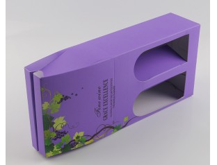 雙支酒包裝盒,采用大氣的葡萄圖案,高貴的紫色,凸顯酒的品質(zhì)。在駿業(yè)包裝廠定做的可折疊酒盒,開窗的設(shè)計,讓客戶一眼就可目睹高貴的紅酒。此紅酒禮品盒內(nèi)采用兩格規(guī)定的形式,保證了產(chǎn)品的安全。