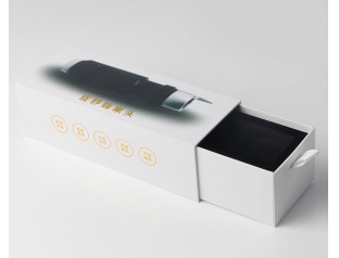 盒子上的品牌名采用亮眼的金黃色,讓人一眼便能記住這個品牌,這是一個很好的營銷手段。抽屜式的設(shè)計讓盒子使用起來更加的方便,如果消費者想要看看商品,那這時就方便很多了,拉開抽屜盒就可以了,不用像其他包裝盒那樣因為害怕會拆壞而拒絕消費者的要求。盒子里面配了一個內(nèi)托,大家都知道,包裝盒的其中一個功能就是保護產(chǎn)品不受傷害,這個盒子有了內(nèi)托,這樣在商品運輸?shù)幕虼尜A的過程中就算有不慎將它跌落也還有一個保護層。