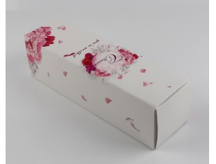 飄散著的粉色花瓣,制造了一種浪漫、溫馨的感覺,情侶間共享燭光晚餐不防也帶上這樣一個酒盒包裝,渲染一下氛圍。駿業(yè)包裝設計印刷的紅酒盒一如既往的平整干凈,厚實、美觀,精湛工藝可見一斑。酒盒開口處那固定酒瓶的圓孔設計,別出心裁,卻為攜帶的安全性帶來一份保險。