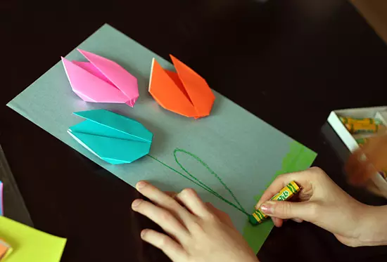 按照下圖的步驟先折出郁金香的形狀接著畫上花的剩余部分就大功告成了。