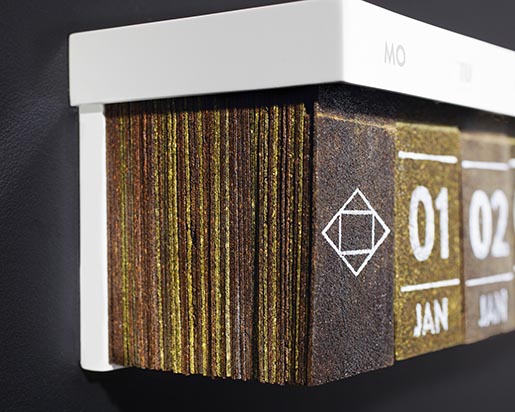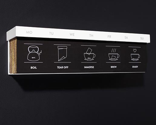 德國茶商Haelssen and Lyon的創(chuàng)意,日歷茶(Tea Cal ar),直接將茶葉處理、壓制成了薄片,上面用可食用的材料印上日期,做成一年的日歷,每天撕下一片來,直接放入開水里就能泡成茶,非常方便又具備時(shí)間流逝感讓喝茶的時(shí)候能更好的感受和珍惜時(shí)間的更迭。可以喝的包裝設(shè)計(jì),很是節(jié)能環(huán)保哦~