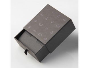 此款首飾包裝盒,采用了常見的開合型翻蓋盒的款式,材質(zhì)是pu皮包膠胚,商標(biāo)燙銀。首飾盒包裝整體用黑色作為底色,醒目的銀色LOGO位于盒子中心,黑白搭配,變得更加簡單和樸素首飾盒選用植絨裱EVA內(nèi)托在保護(hù)好產(chǎn)品的同時,也彰顯其高檔大方。