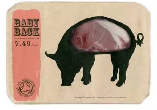 我們?nèi)コ匈I肉的時(shí)候,看到肉檔上擺著的,一塊塊切好了的肉都覺得有點(diǎn)殘忍、血腥,但是如果他們也有了包裝的時(shí)候就不一樣了,包裝盒上加了一點(diǎn)動(dòng)物元素人們便可以“看圖識(shí)肉”了,再也不怕買錯(cuò)肉而被媽媽罵了。