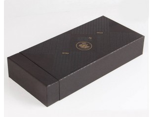 這個(gè)禮品盒定制選用的材質(zhì)是1000可白板紙為內(nèi)紙,裱紙則是雙銅紙,盒型是抽屜盒,盒身覆啞膠,看起來高貴神秘;可以看到這個(gè)禮品盒的表面布滿了用uv印刷出來的文字,在不同的角度可以看到不一樣的效果,這也是防偽的一種方法;盒子的logo采用的是燙金工藝,金燦燦的字體往往能讓人印象深刻,同時(shí)也凸顯了品牌質(zhì)感。