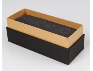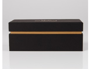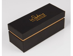 帶圍邊天地蓋禮品包裝盒,采用特種紙裱1000g灰板紙,商標(biāo)燙金禮品盒內(nèi)盒采用復(fù)合海綿內(nèi)托,手感細膩,具有較強的回彈性,持久使用不易變形禮品盒包裝設(shè)計,選擇黑色作為盒身的底色,醒目的金色LOGO居中,高檔大方。